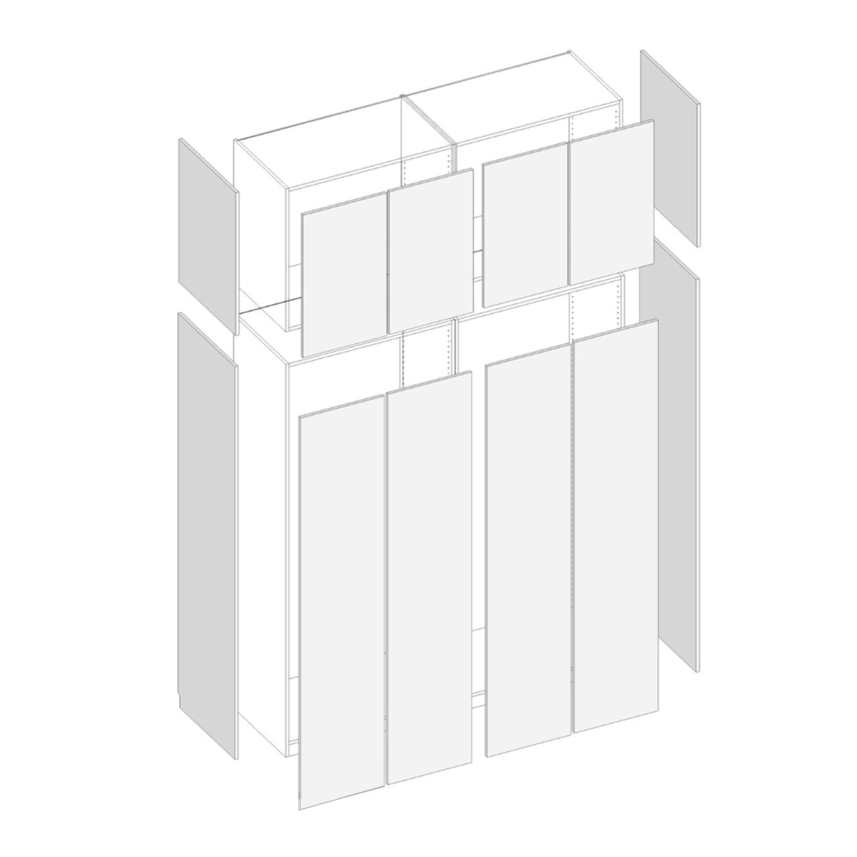 Mit unseren Aufsatzschrank-Korpussen, passenden Fronten, Wandblenden und Außenseiten realisieren wir durchgängige Schranklösungen bis 380cm Deckenhöhe.